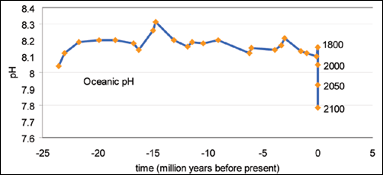 Hlutþrýstingur CO2 í andrúmsloftinu, og sýrustig sjávar (pH) verið stöðugt í yfir 20 milljón ár (Pierson & Palmer, 2000) og hafa ber í huga að núlifandi lífverur jarðar þróuðust á þessu tímabili stöðugleika. Þetta skapar óvissu um hvort nægur breytileiki eða sveigjanleiki sé í erfðamengi lífveranna til þess að takast á við verðandi breytingar. Að auki er sjórinn að súrna hratt og gefst því lítill tími til aðlögunar. Þær lífverur sem hafa stuttan líftíma, þ.e. kynslóðir endurnýjast hratt, eru líklegri til að geta aðlagast heldur en lífverur sem lifa lengi, t.d. 40 ár.